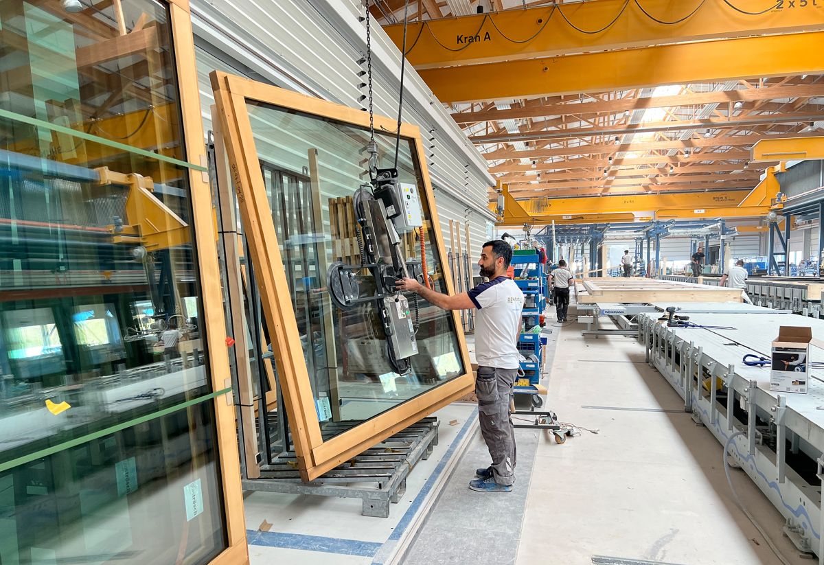 Der Vorteil der Vorfertigung im Werk ist klar: Arbeiten wie der Zargen- und Storeneinbau in Fensterelemente lassen sich im Werk rationeller, präziser und schneller bewerkstelligen. Trotzdem sind Anlieferkoordination, Bearbeitung und Qualitätskontrolle bei 1'072 Fenstern kein Pappenstiel. Unter anderem müssen für die Sicherstellung des Brandschutzes beispielsweise 27'000 m2 Fermacell- Platten verbaut werden.
