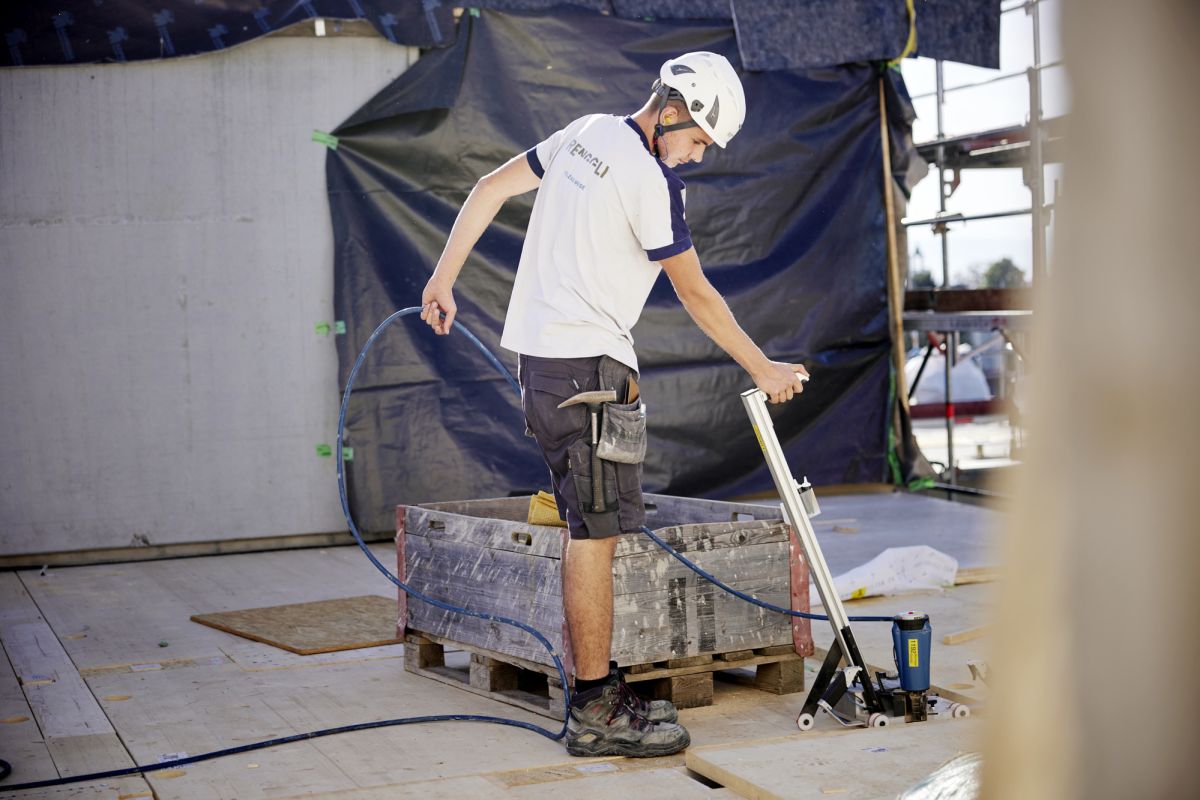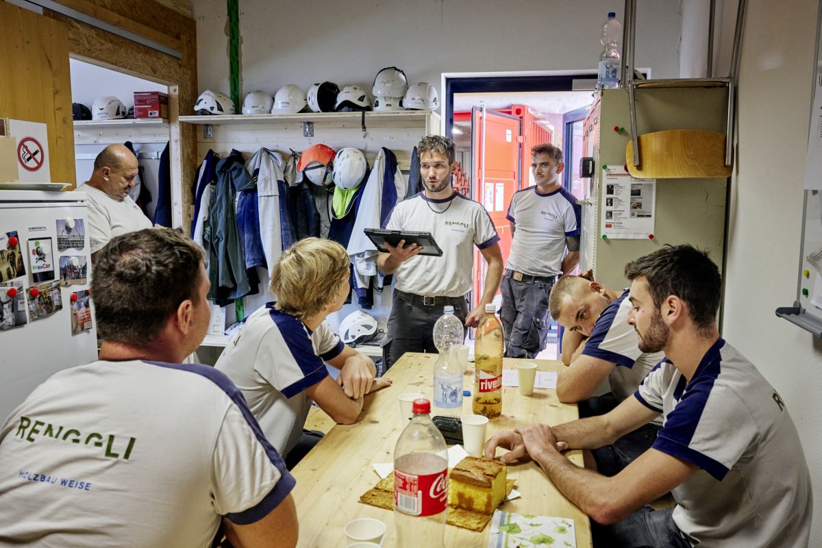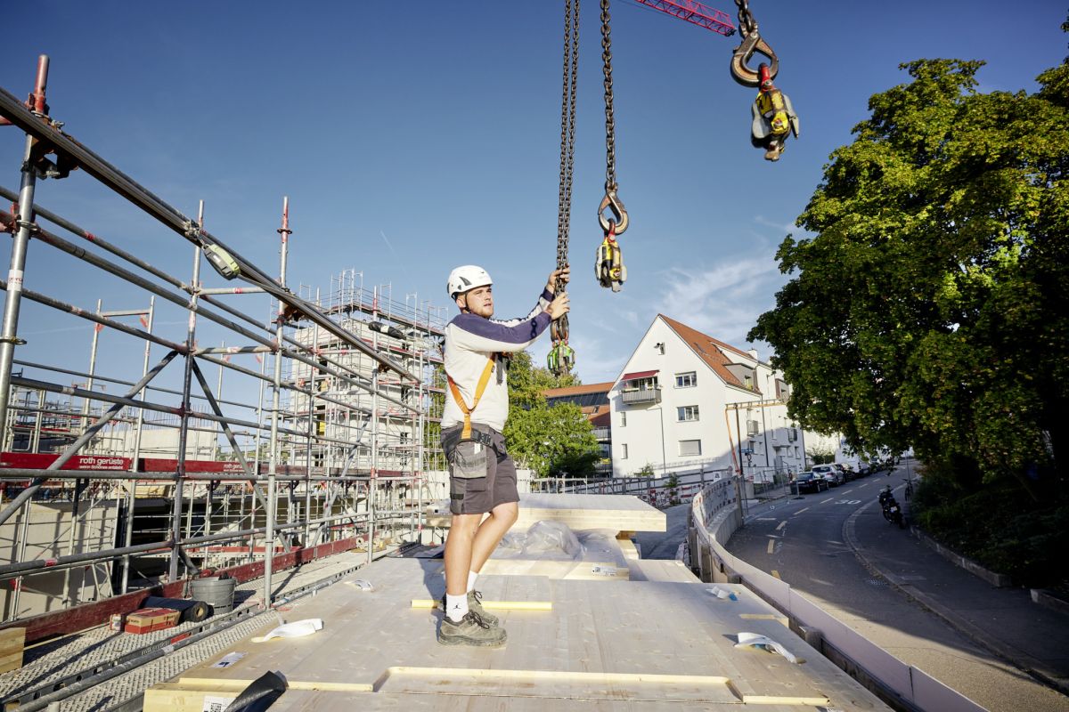Wo sie auftauchen, ist Spektakel garantiert. Mit etwas Unterstützung von Baukranen oder Helikoptern ziehen sie innert Tagen ganze Häuser hoch und leisten in luftiger Höhe passgenaue Montagearbeit. Sie sind die Helden der Baustelle. So gehen sie ans Werk an einem ganz normalen Freitag.