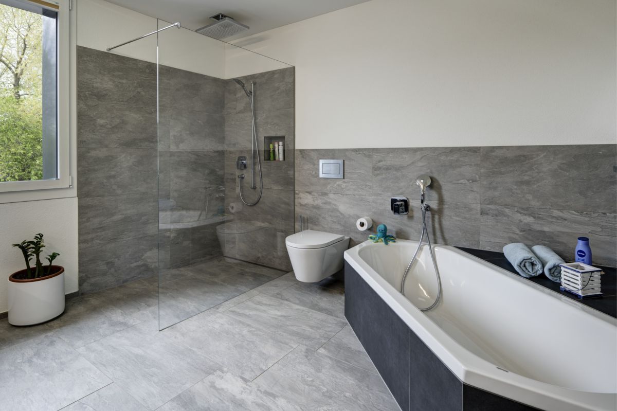 Über ein Onlineportal ausgeschrieben, gewann das Projekt schliesslich das Interesse der Familien Wien und Nanz. Genau in dieser nachhaltigen Art hatten sie sich auch ihr eigenes Projekt vorgestellt. Und schon waren Hausteil 1 und 2 im Doppelpack veräussert, mit der Möglichkeit, individuelle Wünsche miteinzubringen. Maggie Friedrich ist im Erdgeschoss des Hausteils 3 eingezogen, wo sie am liebsten vom lichtdurchfluteten Wohnzimmer den grossartigen Blick in die Natur und auf die Berge geniesst. Das Obergeschoss ist als Mietwohnung konzipiert, wird im Moment aber nicht vermietet. Die gemischte Wohnform mit Jung und Alt über zwei Einfamilienhäuser und eine Wohnung hinweg funktioniert wunderbar. Ein Grund dafür ist sicher auch, dass die Setz Architektur AG bei der Anordnung der Aufenthaltsbereiche um den Bau herum dem Bedürfnis nach Privatsphäre auf besonders kluge Art Rechnung getragen hat. Matthias Nanz meint, das Zusammenleben mit den verschiedenen Parteien gestalte sich sehr harmonisch. Man habe genug Privatsphäre und sei trotzdem nie allein. Allen voran mache das gegenseitige Kinderhüten und gemeinsame Essen die gemeinschaftliche Wohnsituation sehr angenehm.
