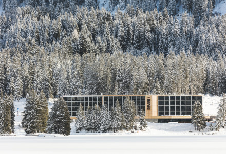 Die 96 Zimmer mit dem erhabenen Blick auf den Heidsee sind entweder 16 oder 23 Quadratmeter gross. Das passt perfekt für Outdoor-Sportler, die ihr Feriengeld nicht primär ins Hotelzimmer stecken wollen. Decken, Böden und Wände bestehen aus Brettsperrholz (Fichte), ausgerüstet mit Holzhaken, Einbauregal, Lichtschiene. Das Besondere an diesen Zimmern jedoch ist: Sie sind Stapelware. Sie wurden nämlich in einem Holzbauwerk im Bregenzer Wald als Module gefertigt und komplett ausgestattet. In Lenzerheide schliesslich hat sie ein Kranführer rasend schnell auf vier Geschosse hochgestapelt, ruhend auf dem Massivunterbau für Lobby, Bar und Restaurant. Da beim Zusammenfügen immer zwei Wände aneinandertreffen, ist auch der Schallschutz top. Diese Modulzimmer sind jedoch nicht bloss praktisch und ökologisch, sie sind im Berg auch eine willkommene Abwechslung zur überstrapazierten Chaletvariante.