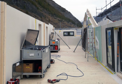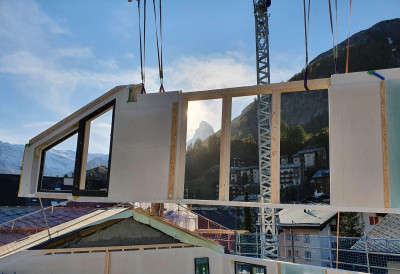 Anfangs Juni waren lediglich Handskizzen von möglichen Zimmergrundrissen vorhanden. Schon 6 Wochen später konnte die komplette Baueingabe eingereicht werden. Das Model war zu diesem Zeitpunkt schon bereit für die Ausführung. Ende September startet die Produktion im Renggli-Werk, so dass das Montageteam ab Mitte Oktober die ersten Elemente für das neue Hotel setzen kann.