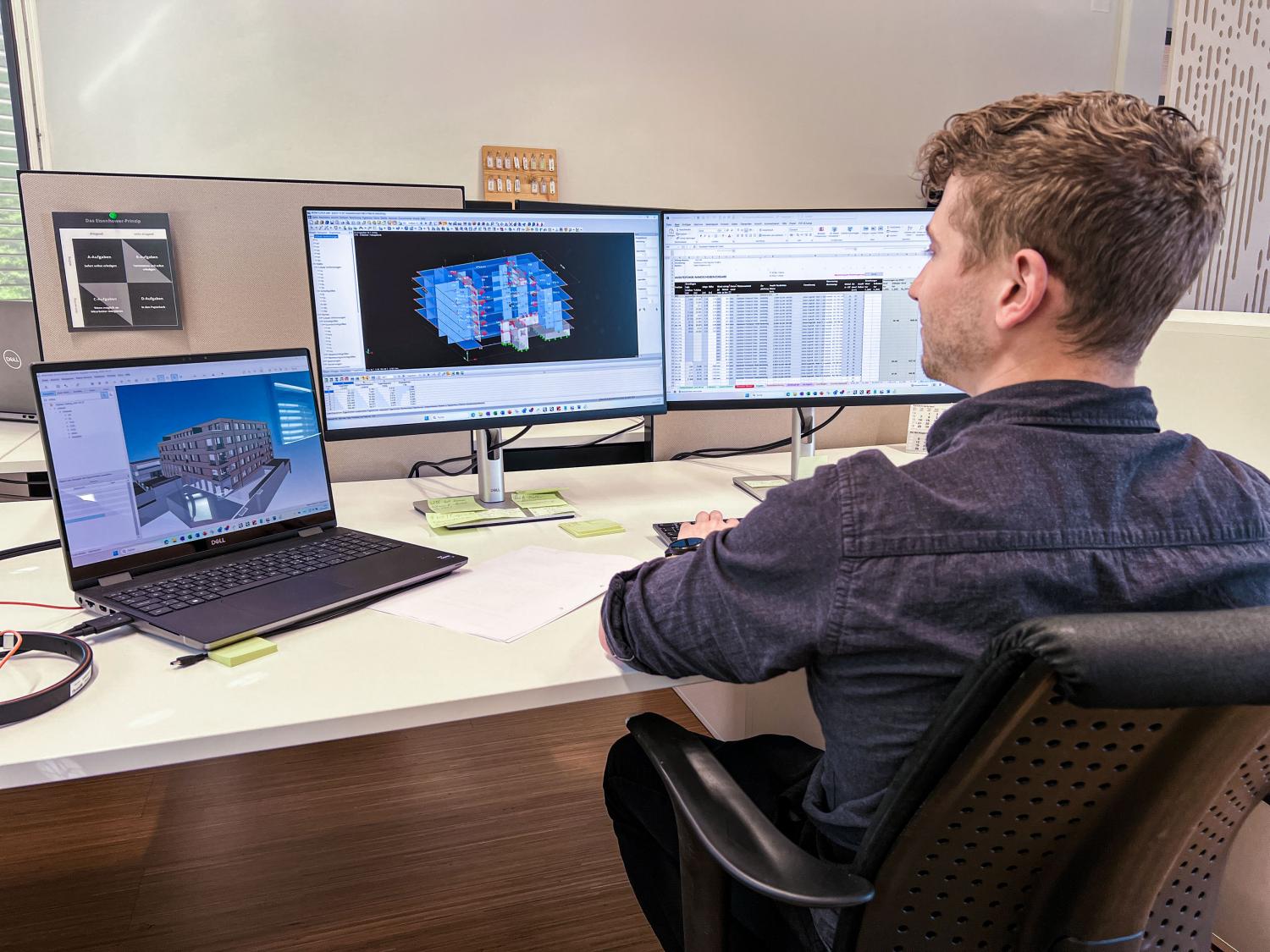 Seit mehr als einem Jahrhundert realisieren wir Holzbauprojekte. Wir haben bereits zahlreiche Lernende und Studierende auf ihrem Weg in die Praxis begleitet – darunter auch viele angehende Holzbauingenieure. Als Praktikantin oder Praktikant erhältst du bei uns einen umfassenden Einblick in den gesamten Prozess – von der Planung bis hin zur Realisierung auf der Baustelle. Wir planen die Projekte nicht nur, wir setzen sie auch selber um. Wir bieten daher als Holzbauunternehmen durch unsere eigene Engineering-Abteilung die ideale Möglichkeit, den Beruf der Holzbauingenieurin bzw. des Holzbaingenieurs in seiner ganzen Breite zu erleben. Das ist ein grosser Vorteil, um zu verstehen, welche Lösungen wirklich funktionieren und wo in der Umsetzung Herausforderungen auftauchen.