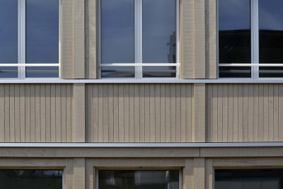 Die Bauzeit betrug nur 14 Monate. Das fünfgeschossige Gebäude ist ein effizienter Holzbau – nur der zentrale Erschliessungskern ist aus vorfabrizierten Betonelementen realisiert. Architektonisch zeigt sich das Gebäude mit einer nicht deckend behandelten Holzfassade, die das Konstruktionsmaterial nach aussen abbildet. Ein weit auskragendes Dach zeigt eine gegliederte Untersicht in Holz und bietet zusätzlichen Wetterschutz.