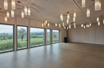 Die Belegungen stiegen über die Jahre so stark an, dass fast eine Verdoppelung der gemütlichen Familienzimmer von vier auf sieben sinnvoll war. Kein einfaches Unterfangen, zog der Ausbau unter anderem doch auch eine Erweiterung des Aufenthaltsbereichs und der Küche mit sich. Nur mithilfe eines Provisoriums konnte das Terra Alta den Zuwachs an Erdenbürgern durchgehend sicherstellen. Sieben Monate später waren die neuen Einrichtungen bezugsbereit, dank der schnellen Holzbauweise.
