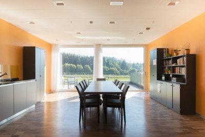 Die erste Bauetappe zur Erweiterung der Stiftung «Siloah» umfasste zwei Bewohnerhäuser, die neue Energiezentrale für das gesamte Areal und im durchgehenden Untergeschoss beider Bewohnerhäuser die Wäscherei. Die neuen Bewohnerräume verfügen über einen hohen Standard. Die Gebäudetechnik umfasst eine Brandmelde- und Sprinkleranlage, ein BUS-System für die Gebäudeautomation, ein Notrufsystem mit Echtzeitortung sowie überall W-LAN. Zum angenehmen Ambiente trägt die Innenraumgestaltung mit speziellen Farbkonzept bei.