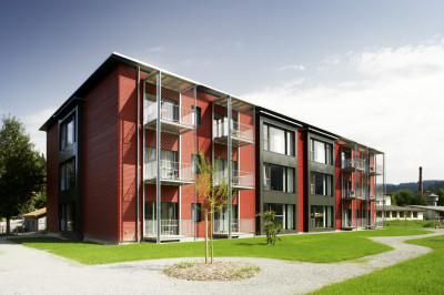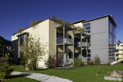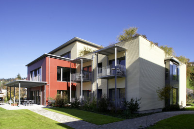 Die Ersatzneubauten bilden das erste Behinderten- und Betagtenpflegeheim dieser Grösse aus Holz im Minergie-Standard.