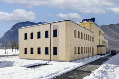 Ein Holzgebäude auf dem Areal zu erbauen war schon lange eine Vision der Bauherrschaft und wurde mit dem Bürotrakt «Buochserhorn» in die Realität umgesetzt. Bei einem Besuch der Pilatus Flugzeugwerke AG bei uns in Schötz überzeugte das Renggli-Bürogebäude mit seinem praktischen Grundriss, das dann als Planungsgrundlage diente. Zudem sprach die planbare und kurze Bauzeit im Holzsystembau zusätzlich für sich: Innerhalb von nur neun Monaten Bauzeit konnten die neuen Büroräumlichkeiten im September 2024 bezogen werden.