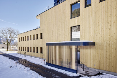 | Konstruktion | Holzsystembau und Skelettbau |