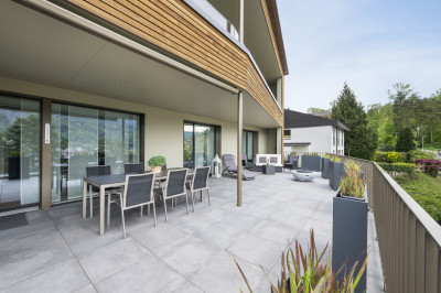Die drei neuen Mietwohnungen bestechen mit ihrem erstklassigen Ausbaustandard und ihren grossen Aussichtsterrassen bzw. Balkonen mit prächtigem Blick auf den Pilatus. Auch die riesigen Sitzfenster in den Wohnungen sind auf das Innerschweizer Bergidyll ausgerichtet. Die Holzfassade des Ersatzneubaus erstrahlt in einem warmen Braun-Bronze-Farbton und fügt sich harmonisch ins Ortsbild und seine Umgebung ein. Das Interieur ist in Materialisierung und Farbgebung sehr ausgewogen gestaltet.
