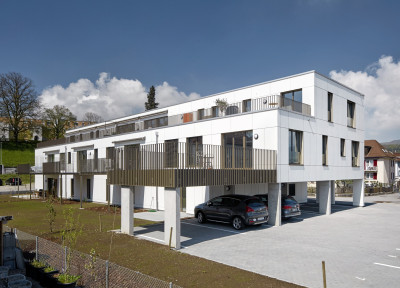 Das Gebäude befindet sich direkt über einem Strassentunnel. Es war zunächst als Massivbau ausgelegt und musste für einen Holzbau statisch komplett umgedacht werden, da die Lastabtragung nicht überall in übereinanderliegenden Zonen konzentriert war. Durch geschickte Engineering-Lösungen konnten die Spannweite der Decke, versetzte Steigzonen in den Wänden und die Lastabtragung elegant umgesetzt werden.