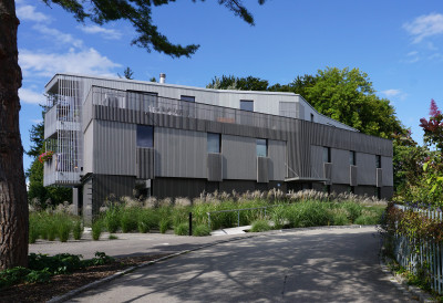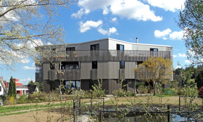 Die von ihnen entworfene «Arche» integriert sich mit ihrer horizontalen Geometrie in die Landschaft und verbindet den natürlichen Aussenraum mit dem Gebäude. Mit der Fassadenaufteilung wurde der alte Baumbestand des Parks nachempfunden. Das Attikageschoss - quasi das Deck - ist über die seitlichen Loggias harmonisch eingefügt.