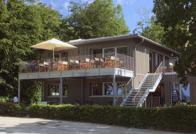 Neu verfügt das Restaurant über 250 Plätze, zwei Säle und einer doppelt so grossen Terrasse im ersten Obergeschoss. Der Innenausbau ist in einfachem Stil à la «Fischerhütte» gehalten. Passend dazu besteht die Fassade aus vorvergrautem Tannen- und Fichtenholz.