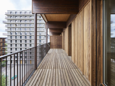 Die drei Langhäuser auf dem ehemaligen Zollfreilager-Areal sind für den Holzbau ein Meilenstein: Sie zeigen die Konkurrenzfähigkeit von Holz bei Grossprojekten. Für die vom Architekten gewählte Typologie der Grundrisse erwies sich die Elementbauweise in Holz als ideal. Dank der hundertfachen Wiederholungen derselben Elemente war der Holzbau sehr konkurrenzfähig – finanziell und in Bezug auf die Bauzeit.