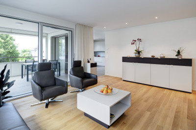 Das Wohnungskonzept umfasst 36 Miet- und Eigentumswohnungen. Durch das modulare Raumkonzept können verschiedene Wohnungsgrössen mit 1.5, 2.5, 3.5 und 4.5-Zimmer-Wohnungen und damit eine bewusste gesellschaftlichen Durchmischung von Einzelpersonen, Paaren und Familien abgebildet werden.