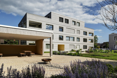 In Möriken entsteht eine Wohnüberbauung nach einem besonderen architektonischen Konzept: das auf Raummodulen basierende System «swisswoodhouse» der Renggli AG wurde durch Setz Architektur AG für drei Mehrfamilienhäuser umgesetzt. Eines wird als reiner Holzbau realisiert, zwei sind Hybridbauten, deren Aussenwände und Fassaden aus Holz sind. Das vierte Gebäude der Überbauung ist ebenfalls ein Hybridbau, folgt jedoch einem anderen Grundrisskonzept. Die vier Gebäude sind U-förmig auf dem Grundstück platziert und schaffen auf der Parzelle einen grossen zusammenhängenden Aussenraum für die Interaktion der Bewohner innerhalb von Gartenpavillon, Spielwiese und Spielgeräten. Durch direkte Zugänge vom Treppenhaus fliessen Garten-, Aussenraum und Innenräume ineinander.