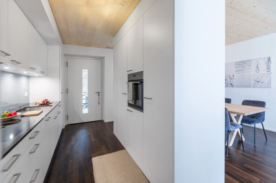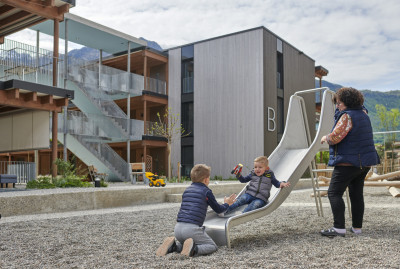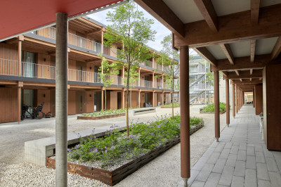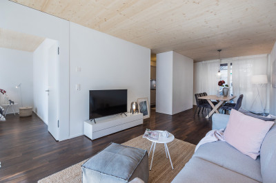 Für einen Investor realisieren wir eine Überbauung mit drei Gebäuden, davon zwei mehrgeschossige Wohnbauten in Holz.