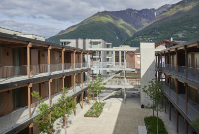 Oxid Architektur GmbH (vormals Burkhalter Sumi Architekten) haben 2017 den Einladungswettbewerb für eine Überbauung der Helsana Immobilien in Bellinzona gewonnen. Die drei bestehenden Mehrfamilienhäuser aus den Jahren 1967, bzw. 1984 und 1987 werden aufgrund ihres Zustands rückgebaut. An ihrer Stelle realisieren wir für die Bauherrschaft ein fünfgeschossiges Mehrfamilienhaus mit Kleinwohnungen in Massivbauweise sowie zwei dreigeschossige Mehrfamilienhäuser als Längsbauten in Holz. Mit dem Konzept von Burkhalter Sumi Architekten wird die Parzelle nicht nur intelligent verdichtet, sondern sie erhält mit dem klug gestalteten Quartierplatz und Binnenraum einen hochwertigen Aussen- und Begegnungsraum.