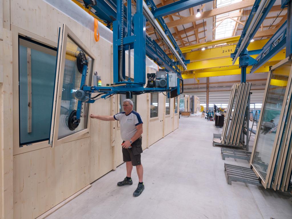 Machen Sie sich ein Bild von der Renggli Holzbauweise. Erfahren Sie im Produktionswerk Schötz, wie Wand-, Boden- und Deckenelemente produziert werden, die sich in nur wenigen Wochen zu einem Mehrfamilienhaus aufrichten lassen.