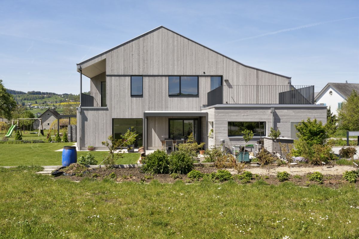 La maîtresse d’ouvrage Maggie Friedrich, propriétaire d’une ferme, voulait en fait construire pour elle-même quelque chose de petit. Une maison adaptée à son âge. Une petite partie du terrain aurait suffi pour cela. Le nouvel objet devait se distinguer par son caractère écologique et son efficacité énergétique. C’est ce qui comptait pour elle, avant tout. Elle a dès lors cherché pour ce projet des partenaires potentiels ayant la même philosophie. Lors d’une journée portes ouvertes, elle a trouvé chez Setz Architektur AG des spécialistes qui avaient gagné plusieurs prix pour des bâtiments en bois écologiques. Il est donc arrivé ce qui devait arriver – mais en réalité d’une manière très différente.
