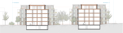 C’est le projet proposé par UNIK Architektur AG qui s’est imposé. Il crée en effet une forte valeur ajoutée grâce à une action fragmentée et parfaitement intégrée au quartier avoisinant ainsi qu’à des plans bien exploitables et structurés de manière systématique. Deux corps de bâtiments identiques sont prévus. Ils sont déployés en Y vers le sud et favorisent les échanges multiples avec le voisinage. Le projet combine densité urbaine et espaces verts ouverts. La conception dynamique des bâtiments et la ruelle résidentielle centrale qui donne sur un lounge communautaire dans le jardin encouragent l’intégration et créent des espaces de rencontre. Le respect de l’écologie est notamment assuré par la préservation des arbustes et l’efficacité du système de construction bois.