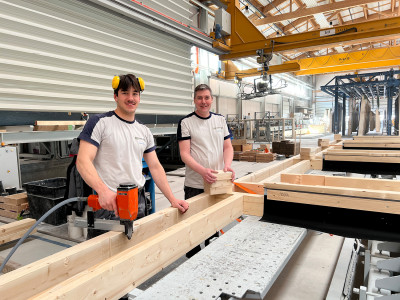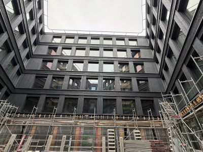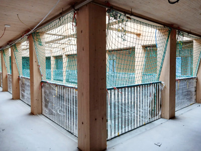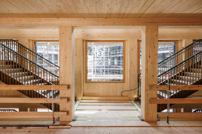 Située dans le quartier nord de Lucerne, cette construction hybride durable en bois avec un « cœur en bois » se compose d’un socle de six étages et d’une tour de dix étages avec un atrium en bois dans la cour intérieure. Des modules photovoltaïques sont prévus sur les toits ainsi que sur certaines parties de la façade afin de produire de l’électricité. La production des éléments de construction en bois a débuté en septembre 2024 et le montage en décembre 2024. Le bois utilisé provient exclusivement de la forêt domaniale de Lucerne. Le projet vise la certification selon le label de durabilité SNBS « Or » et le standard Minergie-P-ECO.