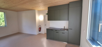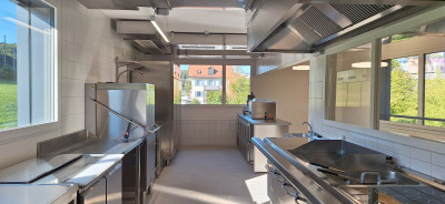Le bâtiment abritera un magasin, une boulangerie, des bureaux, locaux commerciaux ainsi qu’une crèche. La planification et la réalisation sont complexes pour plusieurs raisons : les pieux battus sont nécessaires pour sécuriser le terrain de construction peu porteur et la protection contre les crues d’un ruisseau adjacent doit être garantie.