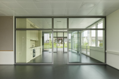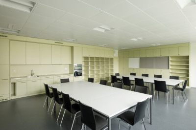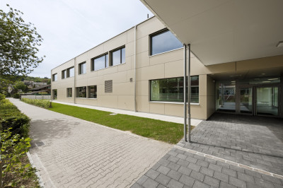 La conception lumineuse, les vastes fenêtres ainsi que la technique du bâtiment veillent à ce que les écoliers, les maîtres et maîtresses s'y sentent à l'aise.