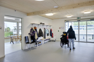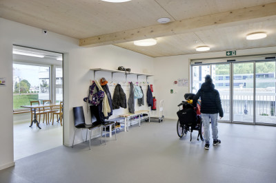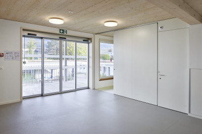 Certains enfants ayant également un handicap mental, des mesures particulières ont été prises lors de la construction. Des protections murales, des marques supplémentaires sur les vitres, des barrières d’escaliers etc. ont été nécessaires. Le know-how de Renggli en matière de construction sans obstacles dans le domaine de la santé a été d’une grande utilité.