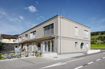La fondation Siloah nous a confié la réalisation d'une crèche de deux étages en système d’ossature bois comme nouveau bâtiment de remplacement.