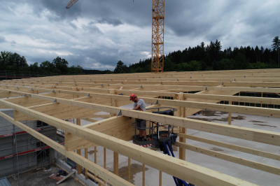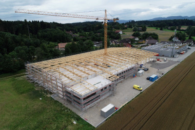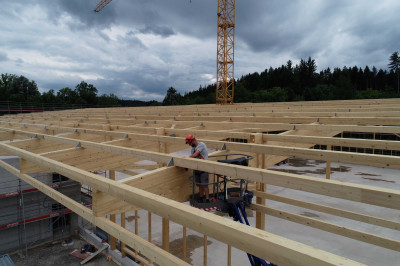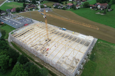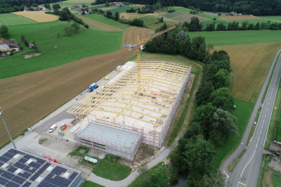 Ce nouveau bâtiment composé d’une halle de production et d’une aile de bureaux adjacente s’avère nécessaire, car l’ancien site a atteint sa limite de capacité de production. Avec cette nouvelle halle de production qui sera mise en service à l’automne 2025, la surface de production actuelle de 3500 m² passera à 4900 m². Ce nouveau bâtiment se distingue entre autres par une ossature durable en bois et par une installation photovoltaïque de 3500 m² placée sur le toit.
