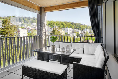 Le nouveau bâtiment se distingue par un concept intelligent et une architecture compacte. Les appartements de 1.5 à 3.5 pièces sont répartis sur deux types d'étages standards et l'ensemble des 28 appartements est accessible par une seule cage d’escalier et un ascenseur. Il y a au rez-de-chaussée une surface commerciale de 200 m² à louer, avec différentes dispositions des lieux, et de la place pour 29 véhicules dans le parking souterrain.