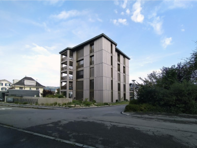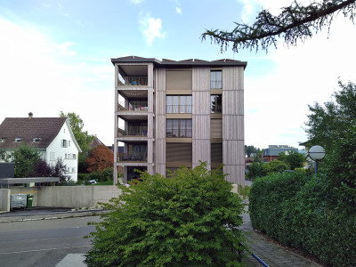 La parcelle se situe au calme, dans le centre de Hochdorf. Il a fallu trouver une solution pour maximiser l’exploitation de la petite parcelle avec un aménagement difficile du garage. Une mission passionnante pour notre architecte Lukas Erni et l’équipe de planification générale. À l’issue de nombreux échanges avec le maître d’ouvrage, les voisins et les autorités et après une étude approfondie de la nouvelle loi sur les constructions avec un coefficient d’occupation du sol, la solution a pu être trouvée: un immeuble d’habitation de cinq étages avec cinq plans de logements identiques et des parties en saillie. La façade se compose de bandes de fenêtres verticales avec une enveloppe en bois verticale aux nuances de gris différentes. L’ensemble dégage une grande sérénité et s’intègre parfaitement dans l’environnement.
