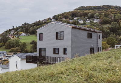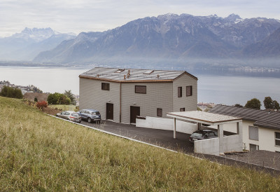 Pour la réalisation de leur immeuble, les maîtres d’ouvrage ont pu utiliser la parcelle d’angle d’un plus grand terrain qui appartenait déjà à la famille. Leur souhait était d’avoir des pièces orientées de manière à offrir une superbe vue panoramique sur les montagnes et le lac Léman. Les appartements pourraient ainsi être loués plus facilement. Le bâtiment devait aussi représenter un investissement à long terme pour les enfants adultes qui y vivraient éventuellement un jour. Le fils, designer industriel, a pu exprimer ses idées dans ce projet de construction. C’est lui qui a conçu la forme de base. Malgré la réglementation restrictive, la parcelle a été parfaitement exploitée, les diverses possibilités ayant été examinées préalablement avec les autorités.