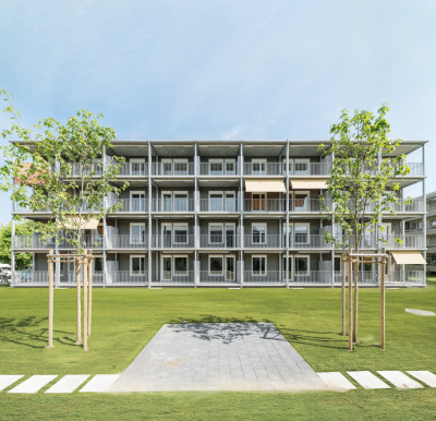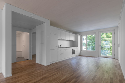 Les modules d’habitation préfabriqués en bois sont installés dans une construction métallique en quelques heures seulement. Grâce à un concept astucieux et à trois types d’appartements standardisés, il est modulable en largeur et en hauteur pour d’autres immeubles d’habitation. Le projet visionnaire permet de remplacer très rapidement et à moindre coût des bâtiments vétustes par de nouveaux bâtiments dans le segment de la location à bas prix et de les utiliser comme logements temporaires pour de grandes rénovations.