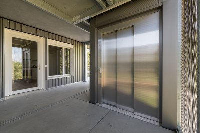 | Façade | 3 côtés : Est, Sud, Ouest Coffrage de joint vertical en bois, couleur : émaillé, façade Eterno gris/(Feyco) gris clair, épicéa, imprégnation sous pression 1 côté : Nord Tôle trapézoïdale, prélaquée, couleur : RAL 9007 gris aluminium |