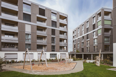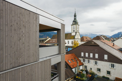 En raison d’un déménagement d’entreprise, le terrain à bâtir a été libéré pour un lotissement de trois immeubles d’habitation, reliés par un rez-de-chaussée commun. Au centre de Bulle, des espaces commerciaux, des bureaux, un centre médical, 40 appartements en location et en PPE et un parking souterrain ont été ainsi créé. Les bâtiments sont construits en système de construction bois. Le matériau naturel est également visible sur la façade en combinaison avec des panneaux en aluminium partiellement thermolaqués.