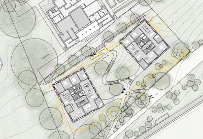 Parmi les six mandats d’études attribués pour la construction de deux immeubles d’habitation, la SUVA a choisi le projet du bureau d’architectes Lengacher Emmenegger Partner. Le terrain se trouve en dessous d’une villa appartenant déjà à l’investisseuse, qui est inscrite dans le registre des monuments historiques de la ville de Lucerne.