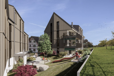 À Schleinikon (ZH), nous réalisons deux nouveaux bâtiments comprenant en tout 17 appartements locatifs selon un système de construction bois moderne.