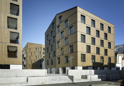 L’architecture moderne se réfère à la construction en bois traditionnelle de l’ancien centre du village – et prend en compte la durabilité de façon symbolique, avec le glacier d’Aletsch à proximité immédiate. Le campus d’Aletsch illustre les synergies convaincantes du bois en combinaison avec le béton. Le squelette en béton armé, avec éléments de parois en bois isolés, forment ainsi une construction hybride classique.