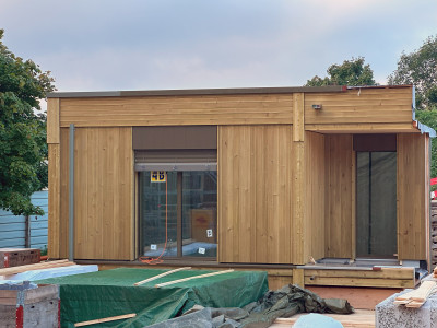 | Façade | Bois Coffrage vertical et horizontal, traitement Imprégnation sous pression - Couleur verte. |