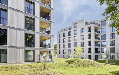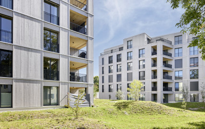 Après l’attribution du marché, le maître d’ouvrage a décidé, pour des raisons de durabilité, de réaliser des constructions entièrement en bois au lieu de constructions en béton avec façade en bois, une tâche difficile à mettre en œuvre à ce stade avancé de la planification.