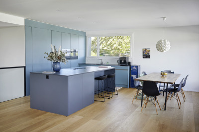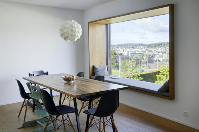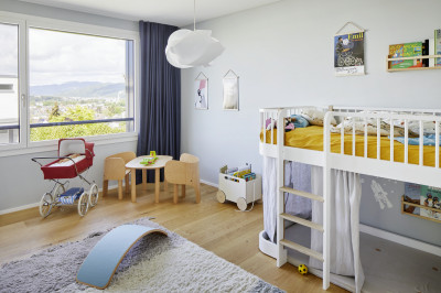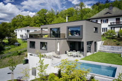 Le désir d'avoir sa propre maison à un emplacement central était grand. Avec Renggli, les maîtres d'ouvrages se sont mis à la recherche d'un terrain à bâtir. Ils l'ont trouvé sur une colline à Zofingue. Grâce à une coopération basée sur la confiance et à une communication rapide et proactive, les maîtres d'ouvrages ont rapidement pris la décision et ont ainsi obtenu le terrain. La maison familiale en construction bois, conçue par l'architecte de Renggli Lukas Erni, a immédiatement été approuvée par les nouveaux propriétaires. Au centre de l’étage de vie se trouve la belle cuisine vert émeraude comprenant un réduit parfaitement dissimulé. De plus, de généreuses terrasses entourent le séjour à l'étage supérieur et une fenêtre en alcôve invite à profiter de la vue magnifique. Les salles de bains témoignent également d'un choix harmonieux de matériaux, qu'il s'agisse du choix des couleurs, du carrelage ou du papier peint à motifs. Le lounge couvert du rez-de-chaussée est relié à l'intérieur chauffé et peut donc être utilisé en toute saison. La piscine extérieure surélevée, parfaitement intégrée dans l'environnement, constitue une oasis de bien-être avec une vue magnifique sur la ville de Zofingue et le Jura bernois.