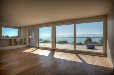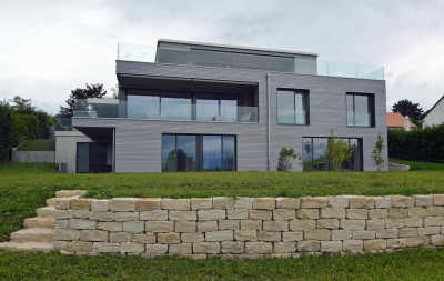 Une nouvelle maison Minergie pour une architecte, sa soeur et leurs familles avec une vue merveilleuse sur le lac Léman.