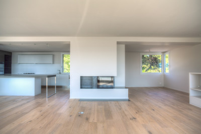 Tous les occupants de la maison peuvent directement accéder des chambres à coucher et des chambres d'enfants du sous-sol au grand jardin aménagé sur deux niveaux dans la pente du terrain. Le rez-de-chaussée et l'attique comprennent les séjours, les cuisines et les terrasses. On jouit de toutes les pièces et des terrasses, ainsi que du jardin, d'une vue superbe sur le lac Léman.