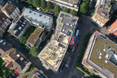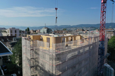 Un immeuble d’habitation situé en plein centre de Zurich a été rénové et surélevé d’un étage.