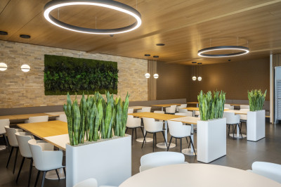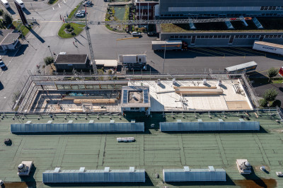 Une aile de bureaux d’un bâtiment abritant le centre logistique de Galliker Transport AG, active dans toute l'Europe, a été agrandie. La surface supplémentaire offre de l’espace pour deux terrasses, une cuisine de 70 m2 et un restaurant de 370 m2. Grâce à son faible poids spécifique, le bois a rendu une surélévation possible. Un plafond acoustique avec des éléments de refroidissement intégrés garantit un climat intérieur agréable et un grand confort. Les surélévations réalisées avec du bois sont aussi une solution convaincante en raison de la courte durée de construction et des émissions réduites sur le chantier. Le montage des éléments en bois n'a duré que trois jours. L'aménagement intérieur étant terminé, les collaborateurs de Galliker sont heureux, aujourd’hui, d’avoir un restaurant moderne au sein de leur entreprise.