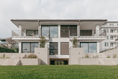 Deux maisons jumelées en bois ont été construites à St-Prex, avec un magnifique vue sur le lac Léman.