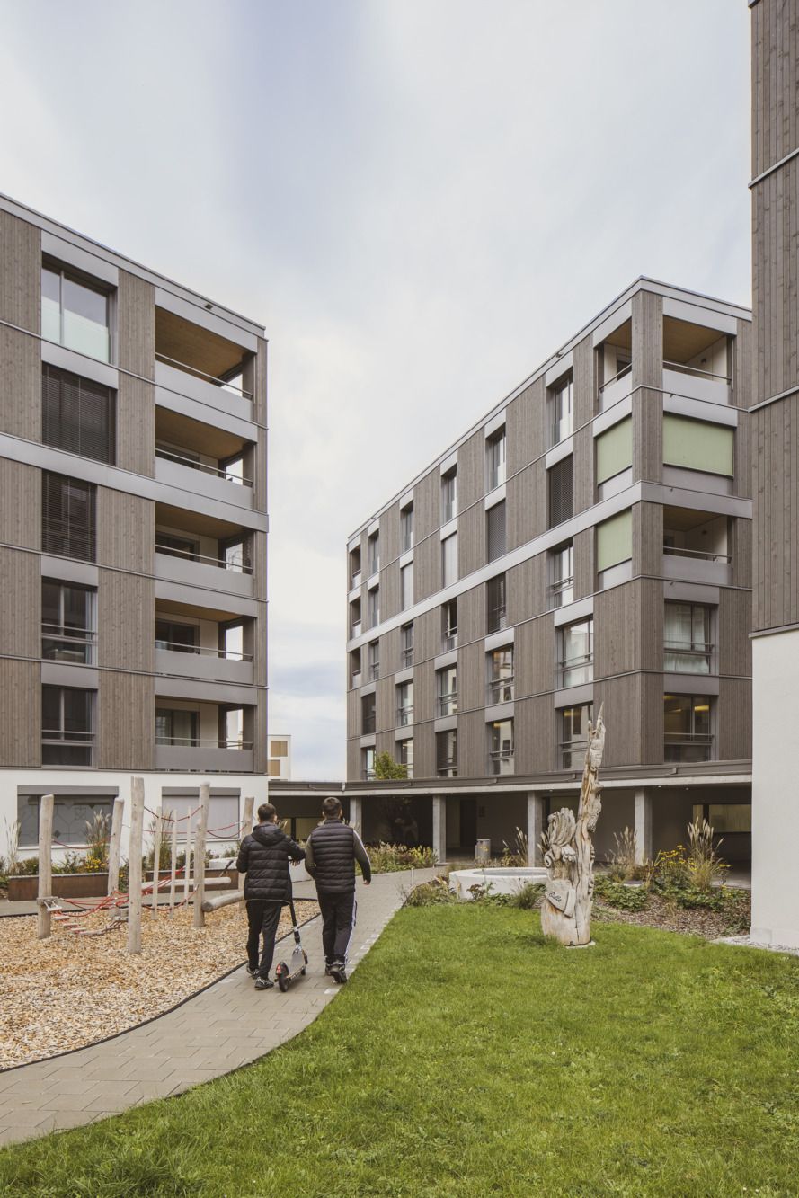 In seguito al trasferimento di un’azienda, nel centro di Bulle si era liberato un grande terreno edificabile. È bastata un’occhiata al sito per risvegliare in Georges e Marc Fragnière, padre e figlio, lo spirito imprenditoriale. La posizione e la superficie sembravano perfette per un progetto di vaste dimensioni con appartamenti e spazi commerciali. Dopo uno studio di fattibilità molto promettente, hanno contattato lo studio di architettura locale Deillon Delley Architectes, che conoscevano sia privatamente che per la loro esperienza nel ramo delle costruzioni in legno.